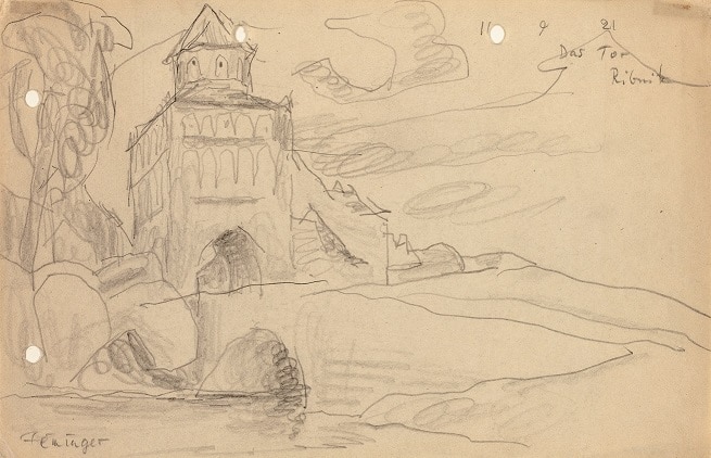 Diese für Lyonel Feininger typische Arbeitsweise, sich häufig immer aufs Neue einem Sujet zuzuwenden, es vielfältig durchzuarbeiten, trifft auf dieses massive Gebäude ganz besonders zu.
